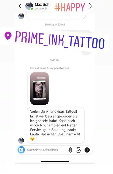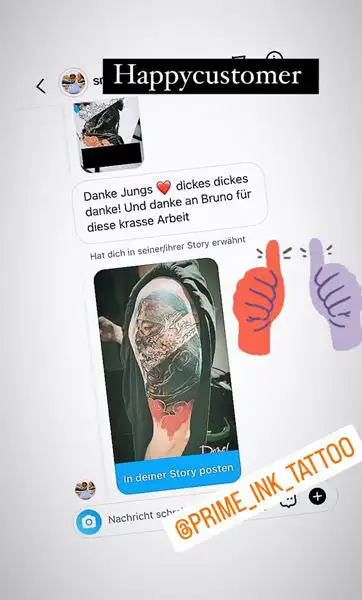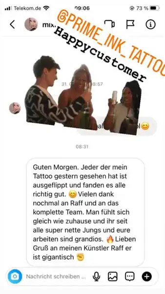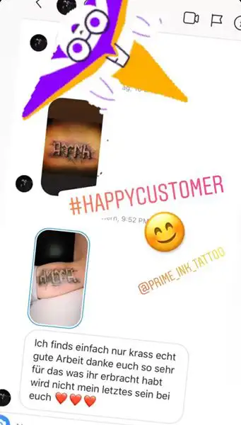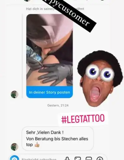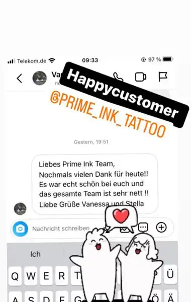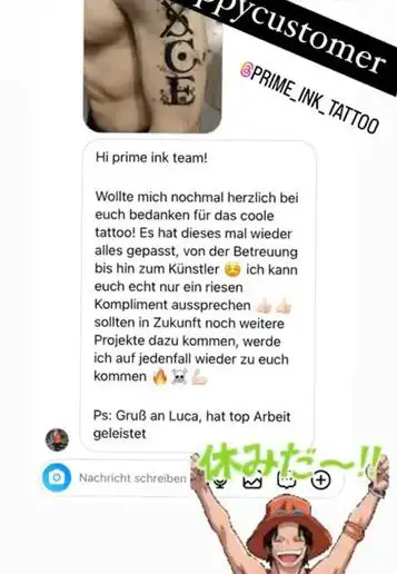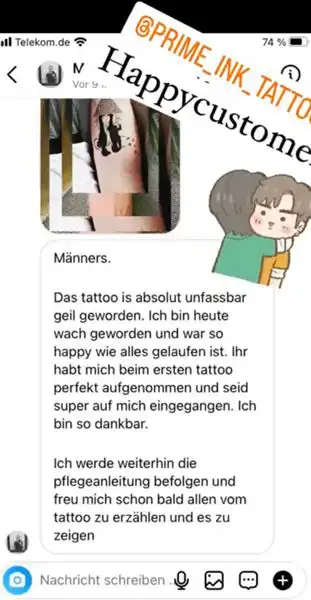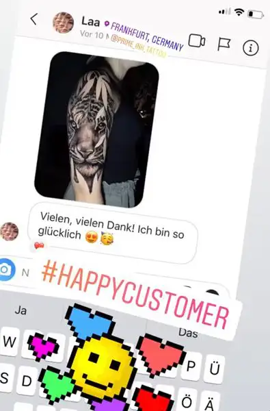 Hier zeigen wir euch einige Kundenbewertungen die wir täglich von euch über Instagram erhalten. Prime Ink Bremen Rezensionen sind mehr als nur Bewertungen unserer Kunden. Es ist die Bestätigung unserer Anstrengungen. Wir danken unseren Kunden für das durchweg positive Feedback.